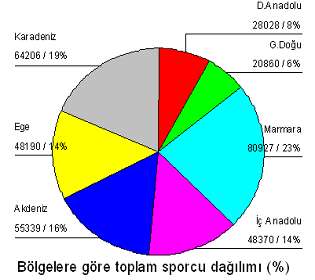 bakıldığında Doğu ve Güneydoğu Anadolu bölgesindeki sporcu sayısının diğer