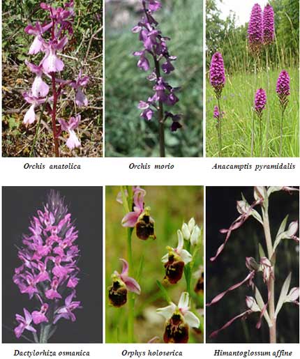 yabani orkide türleri Orchis anatolica, O.mascula, O.spitzelii, O.tridentata,